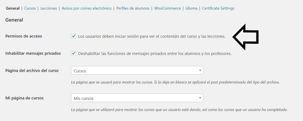 Solo con este primer check ya estás protegiendo tus cursos para que solo se pueda acceder desde un área privada para que solo quienes lo compren puedan verlo.