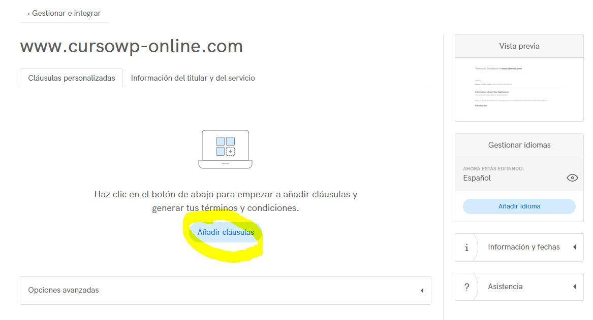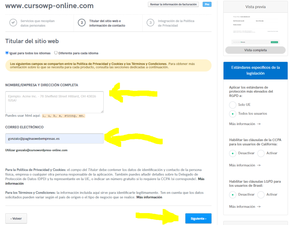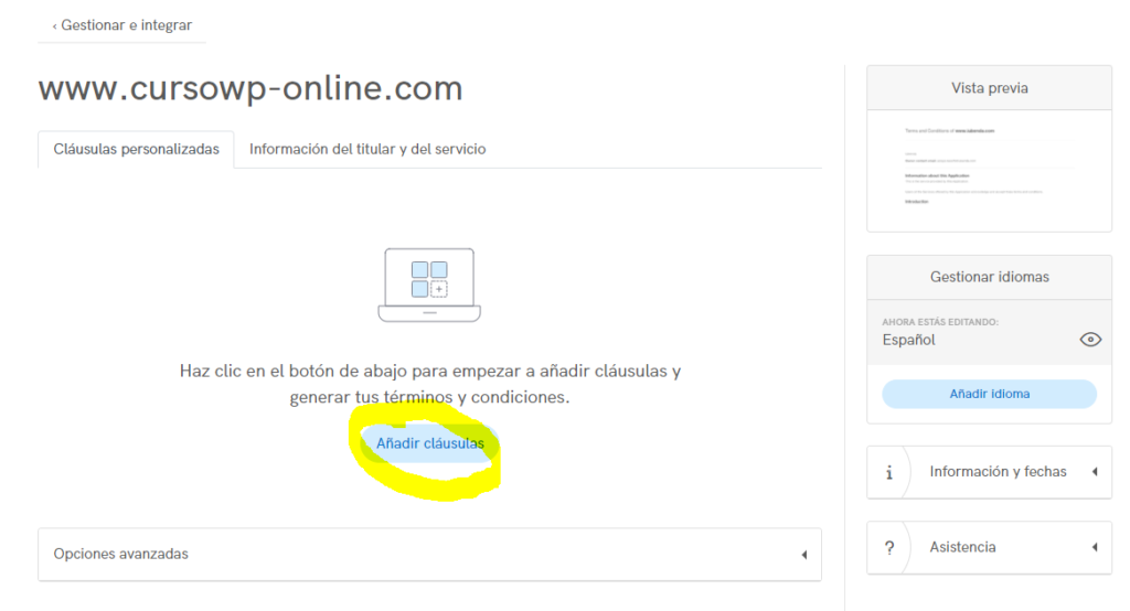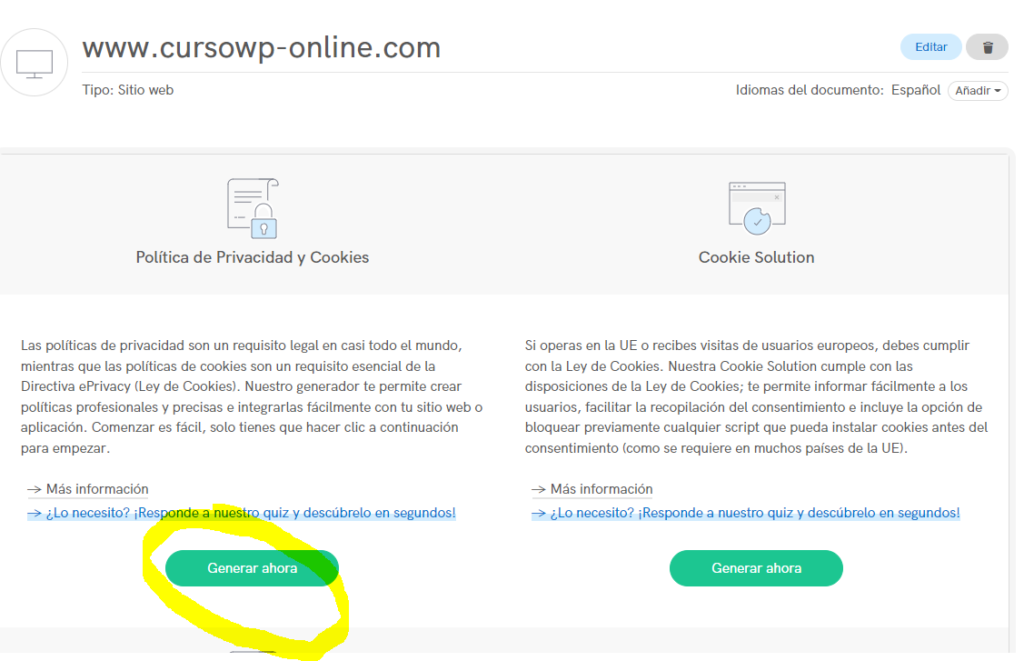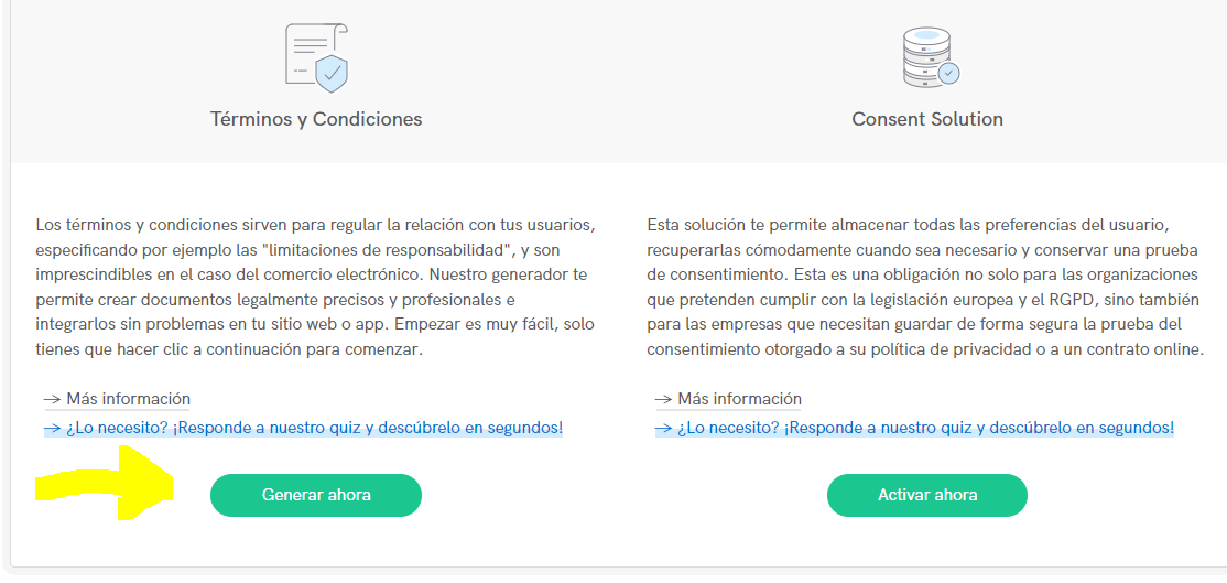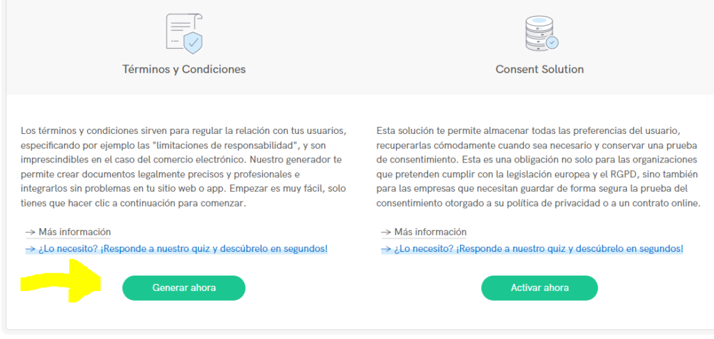 Aquí el proceso es igual de sencillo que con la Política de Privacidad y Cookies, simplemente vas siguiendo un asistente, y en pocos minutos los tienes redactados.