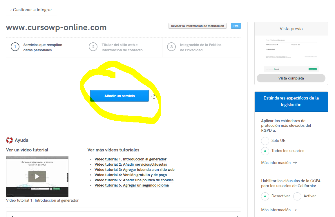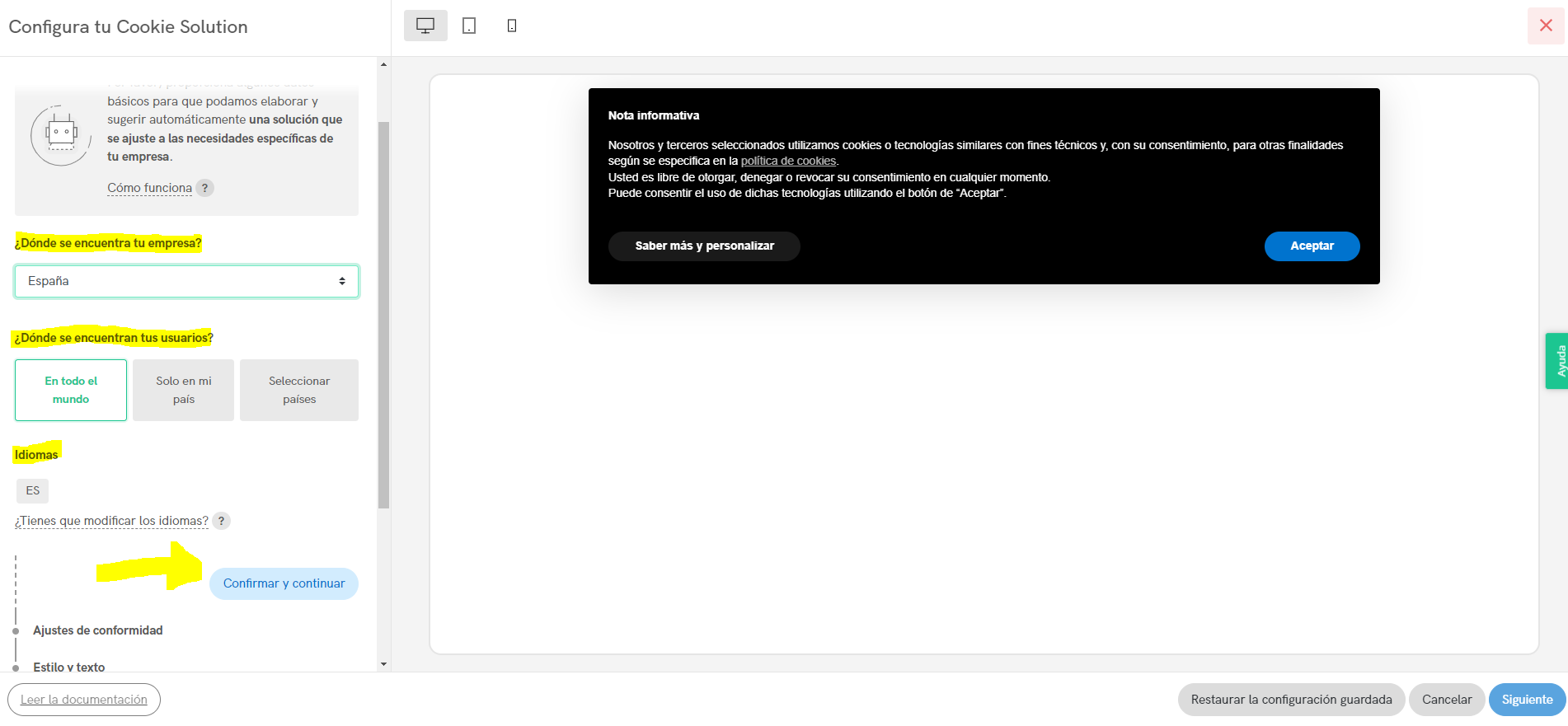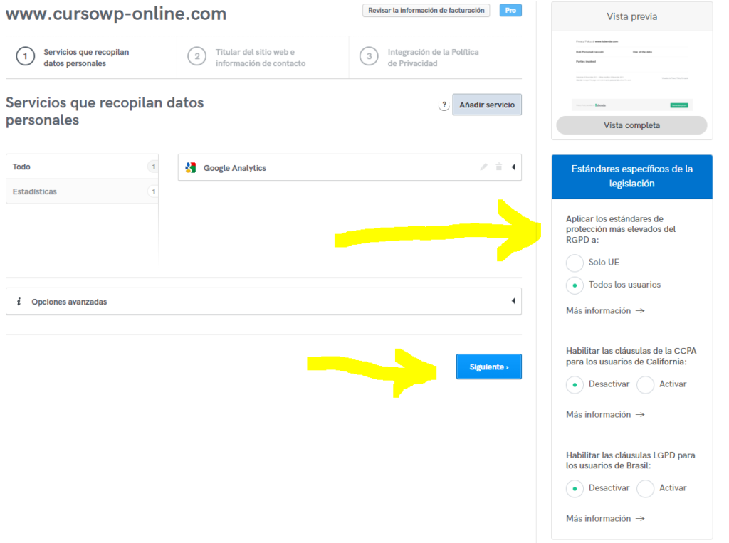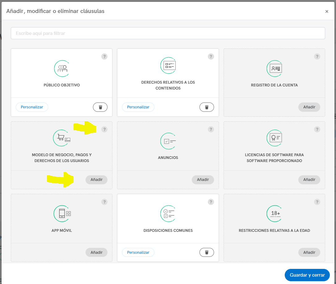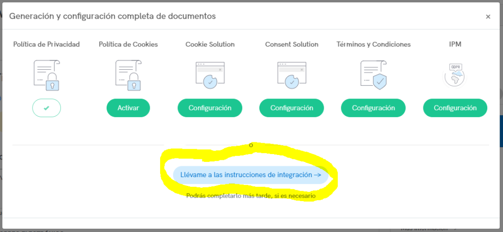 Aquí el proceso es igual de sencillo que con la Política de Privacidad y Cookies, simplemente vas siguiendo un asistente, y en pocos minutos los tienes redactados.