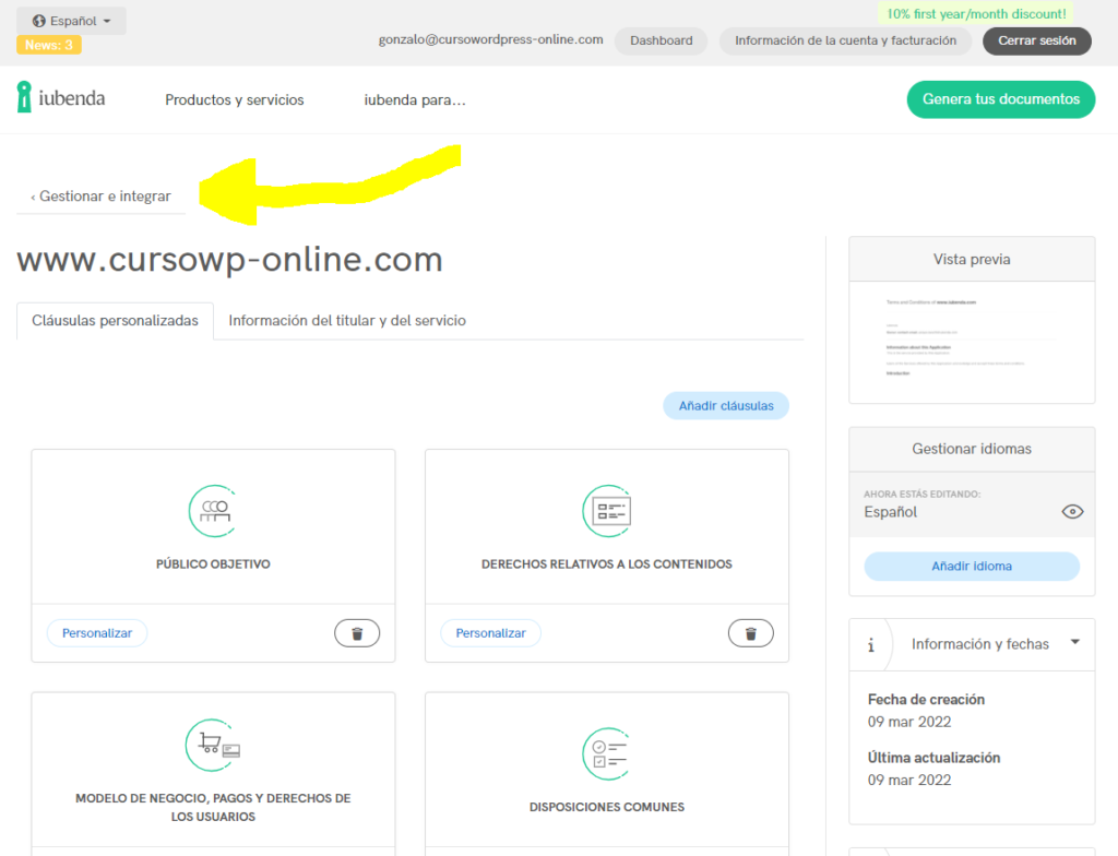 Si vas a contratar iubenda (porque muy posiblemente después de leer el post te haya encantado) te recomiendo que lo compres desde este botón, o cualquiera de los enlaces de este post, que tienen un 10% de descuento.