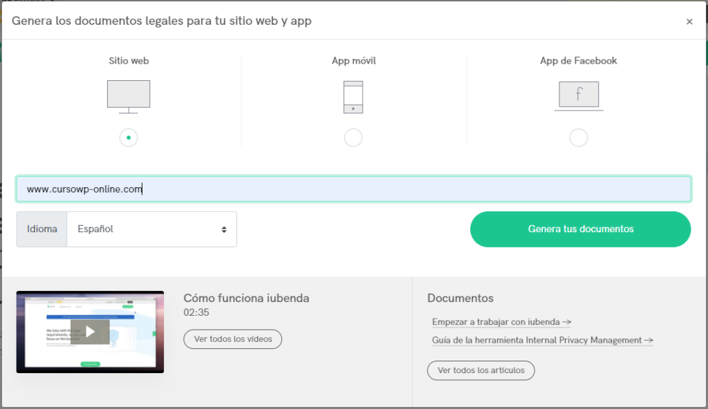 - Paso 1: Pulsa en el botón de GENERAR DOCUMENTOS y escribe tu web