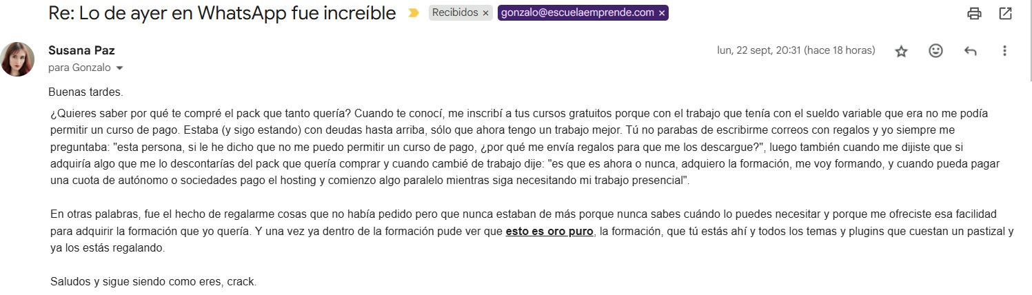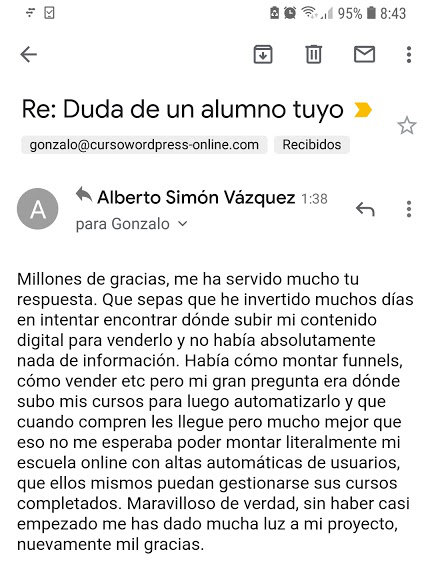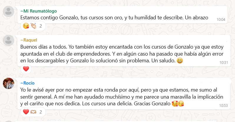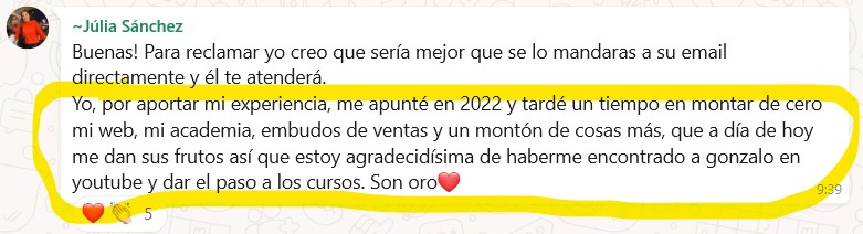 "He quedado sorprendido porque pensaba que no iba a vender ningún curso y ya estoy vendiendo. Además con los plugins y cursos de Gonzalo ahorro un montón de dinero al año"
