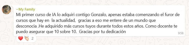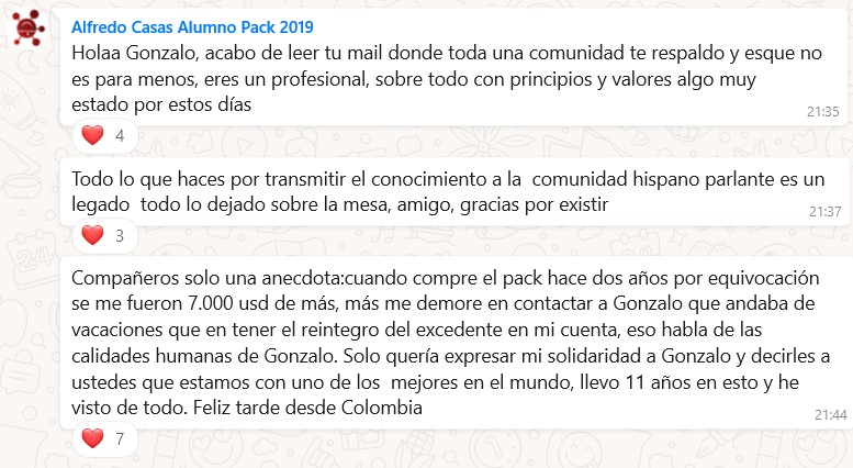 Así que, si estás en duda de comprar o no los cursos de Gonzalo te los recomiendo a fuego, es un genio que siempre está para contestar tus dudas y sin que lo moleste cuando estaba en pleno colapso que no me salían las cosas él estaba ahí para ayudar y dar claridad.