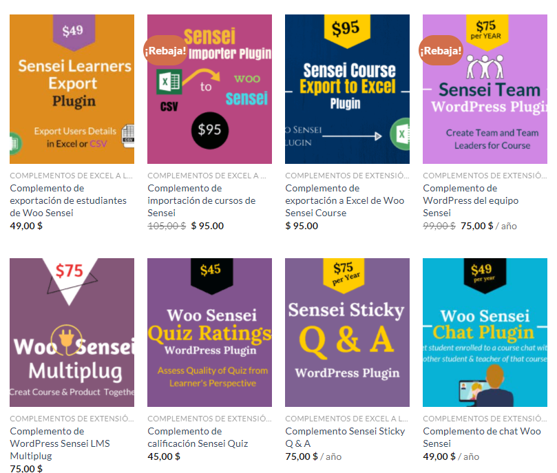 - LearnDash Course Grid: Para mostrar el listado de cursos disponibles en columnas (modo rejilla). Con Sensei esto puedes diseñarlo a medida sin plugins como explico aquí
