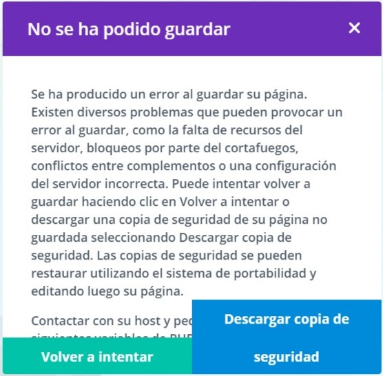 • No se ha podido guardar: Descarga copia de Seguridad o Volver a intentar