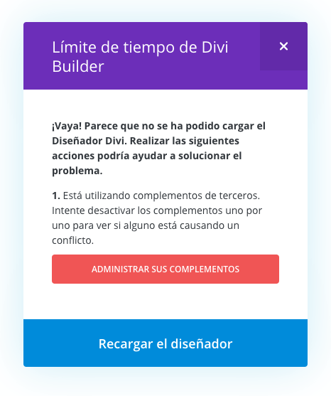 Pero con Divi te puedes ahorrar inicialmente ese paso para saber si alguno de tus plugins es el causante.