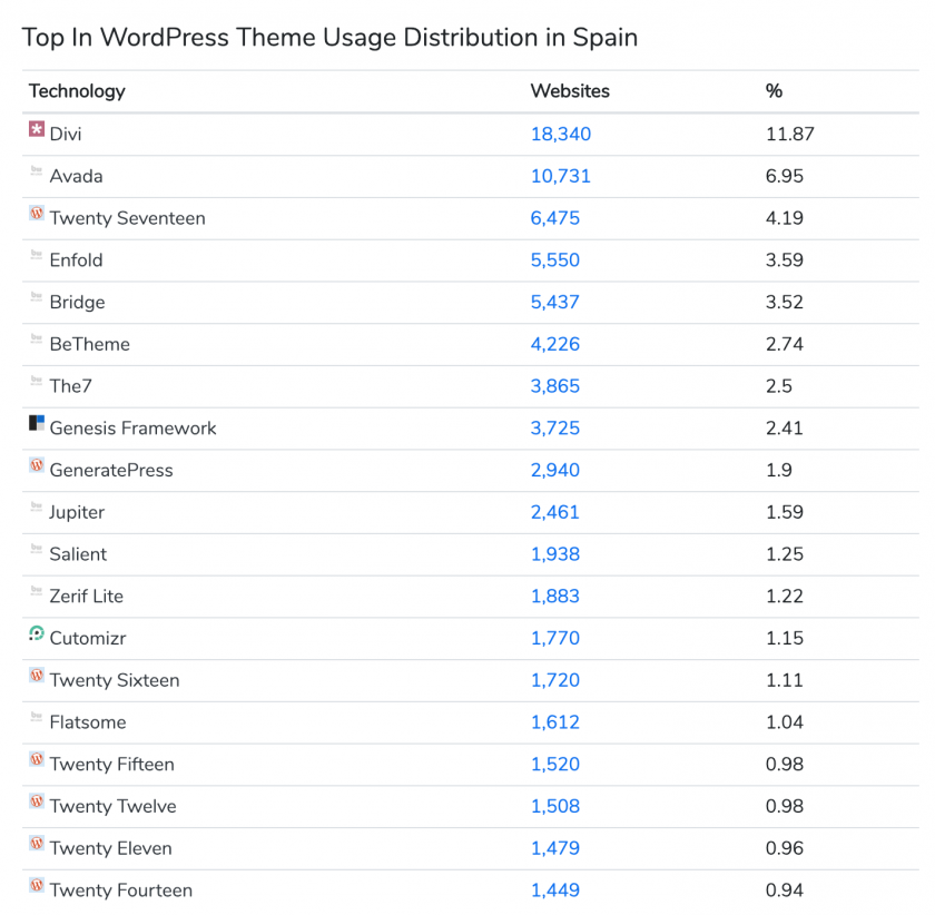 Fuente: https://trends.builtwith.com/framework/wordpress-theme/country/Spain